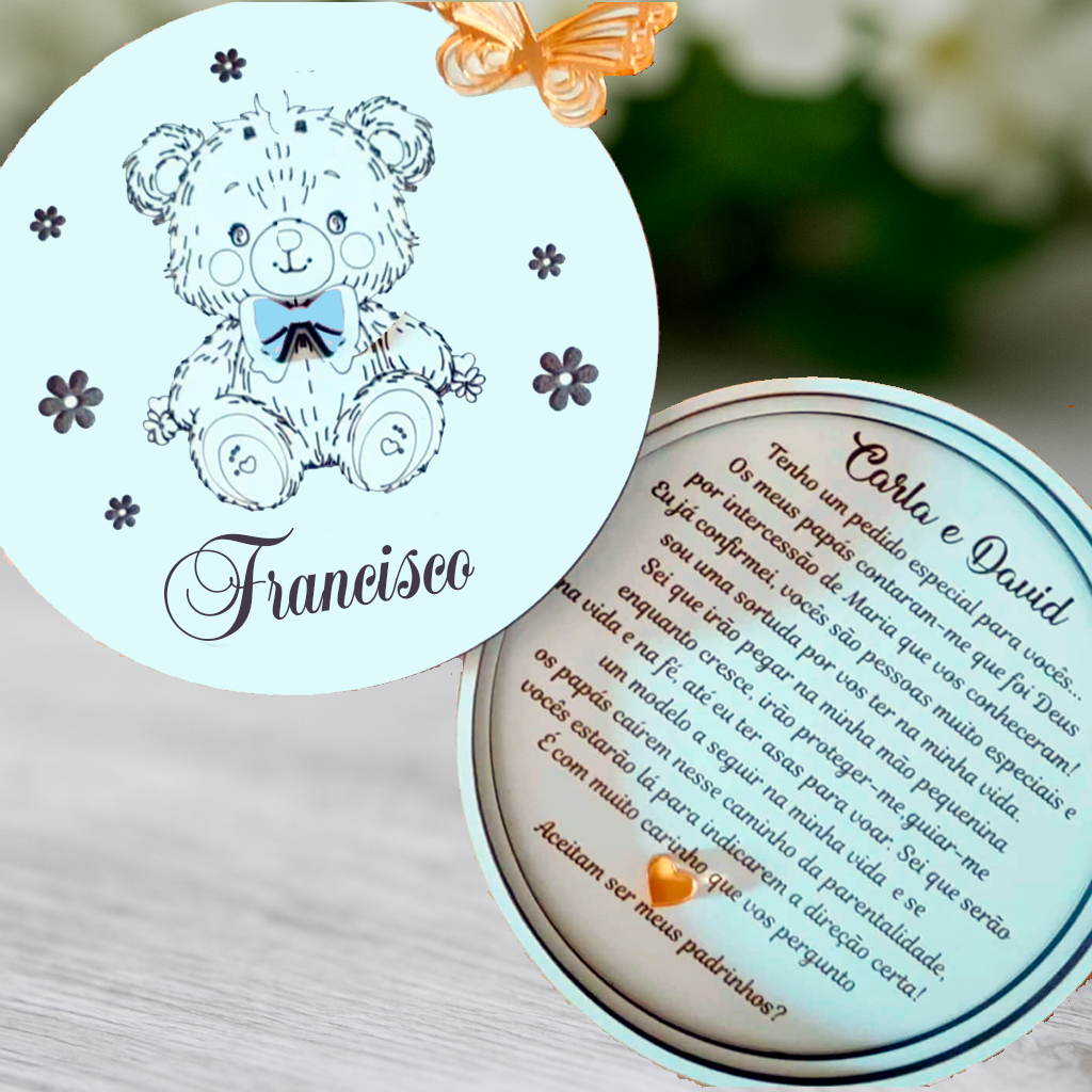 Convite Padrinhos Batismo Caixa Urso modelo1