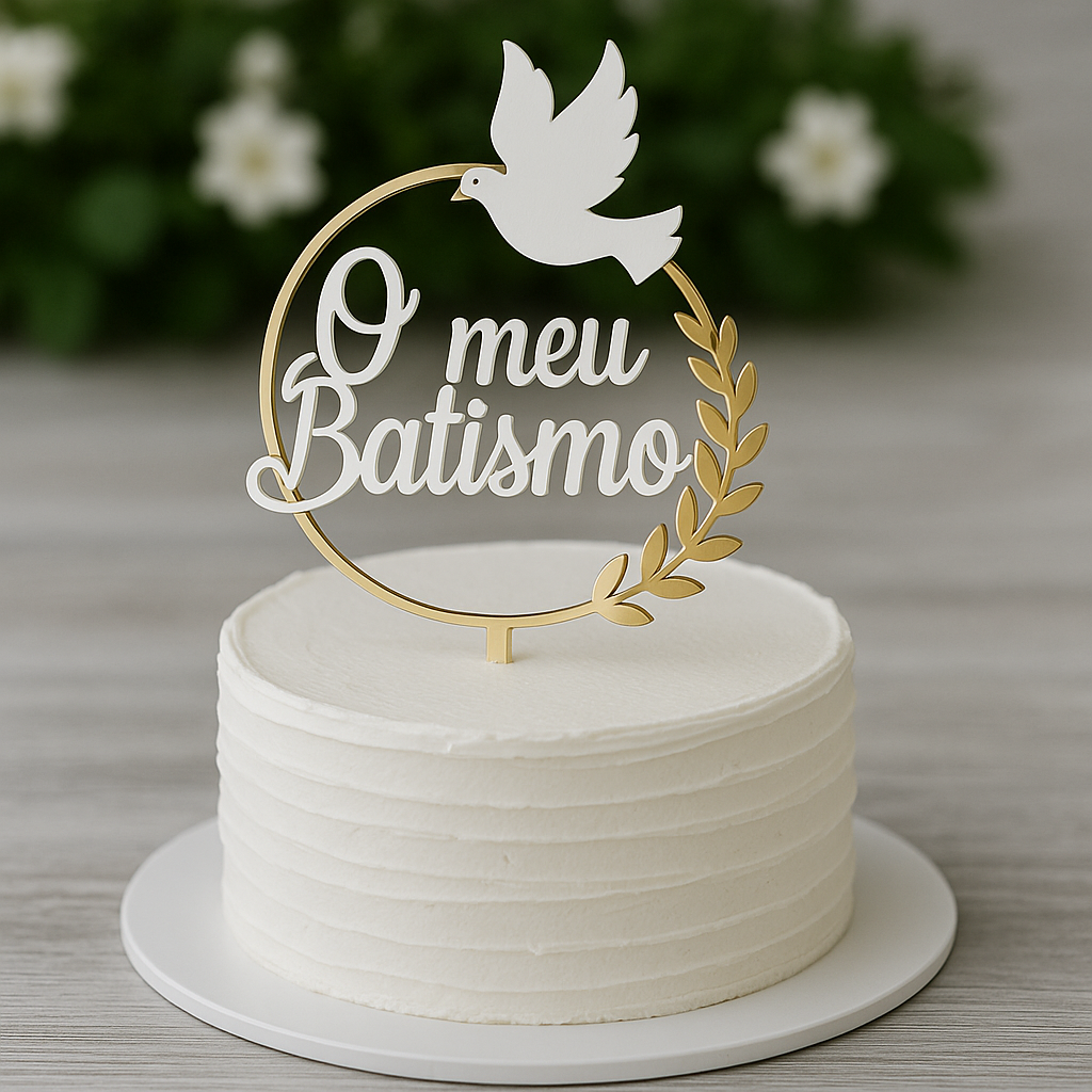 Topper de bolo de Batismo com Pomba